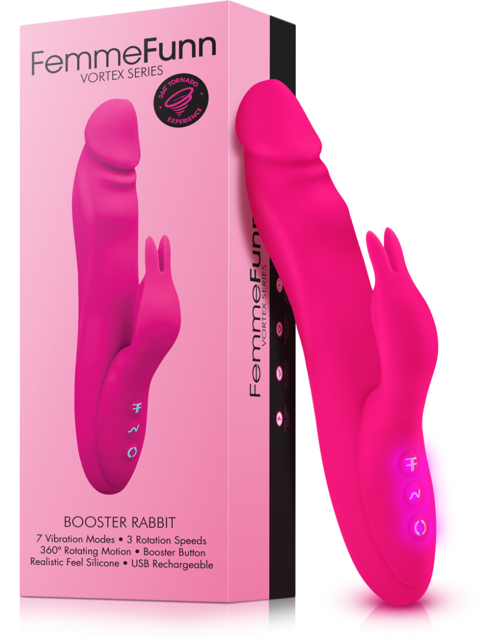 Booster Rabbit is a cordless silicone rabbit vibrator with 360-degree vortex motion on the shaft for extreme g-spot stimulation, a super powerful vibrating clitoris massager and a turbo button to make sure orgasms are out of this world.